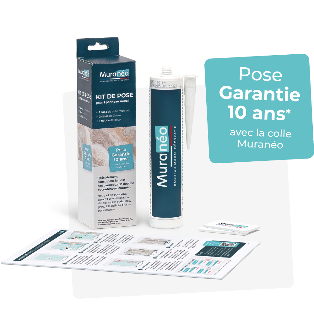 *Avec notre Kit de pose Muranéo comprenant la colle Muranéo, la pose de vos panneaux muraux est garantie 10 ans.